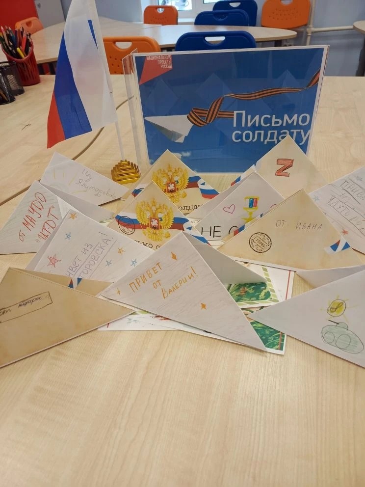 С самого начала специальной военной операции обучающиеся ЦТДТ постоянно поддерживают наших солдат и офицеров. В рамках патриотического воспитания обучающиеся Центра туризма и детского творчества приняли активное участие во Всероссийской акции «Письмо солдату». Ребята обратились с теплыми словами поддержки ко всем тем, кто сейчас участвует в спецоперации. Они написали им простые и очень теплые и искренние слова, которые именно сейчас им так необходимы. Дети верят, что наши письма обязательно дойдут до адресатов и подарят им частичку домашнего тепла.